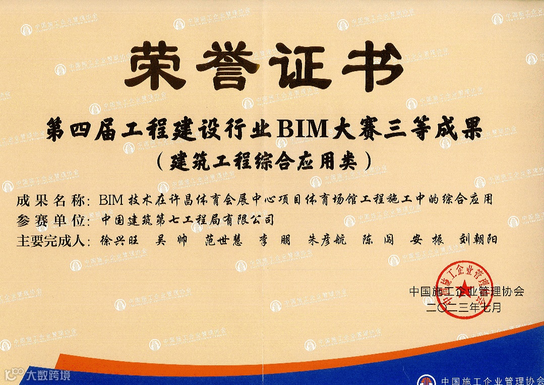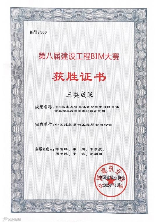日前,由中国建筑业协会主办的第八届建设工程BIM大赛顺利落下帷幕,公司成果《BIM技术在许昌体育会展中心项目体育场馆工程施工中的综合应用》获评三类成果。