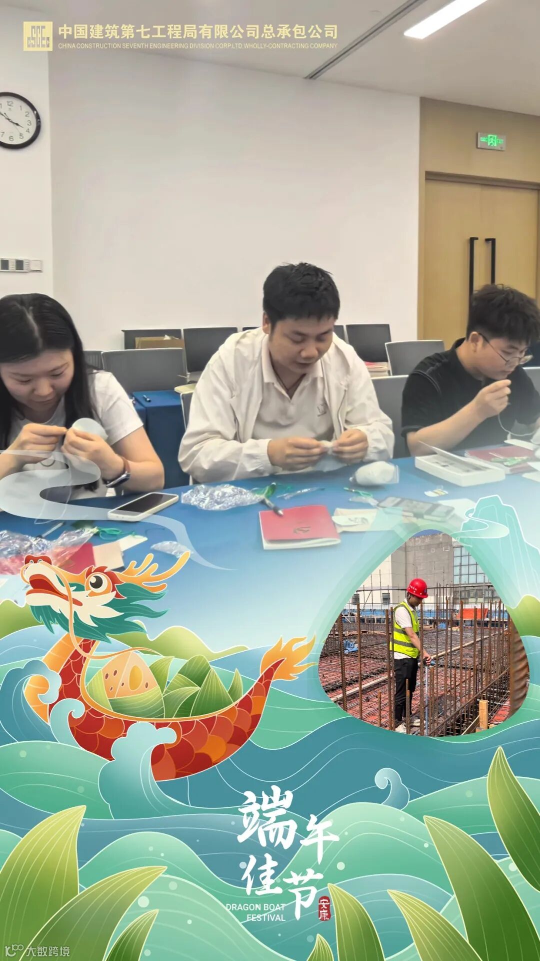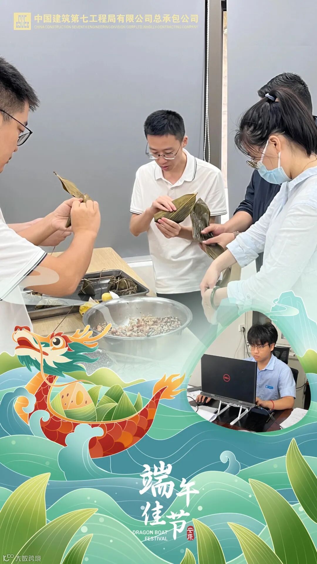 为庆祝端午传统节日,项目部组织员工一起包粽子,大家相互配合,有的叠粽叶,有的缠线,欢声笑语乐在其中。糯米是思念的粘连,粽叶是清爽的装扮,红枣是吉祥的代言,一年一端午,一岁一安康,每逢佳节倍思亲,祝愿家人安康,阖家幸福。