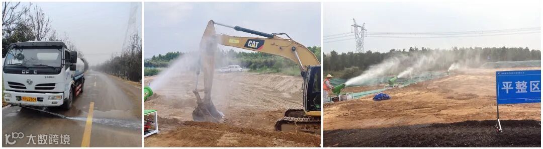 由于项目沿线乡镇密集、农田大棚较多,施工中若产生扬尘,易对居民生活、农业生产造成影响,且当地大风、干燥天气较多,能否做好扬尘管控工作,成为保障绿色文明施工的重难点。