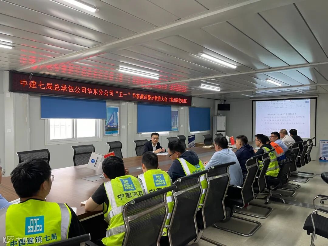 4月26日,分公司党总支副书记、工会主席杨玉刚到常州项目开展节前警示教育。