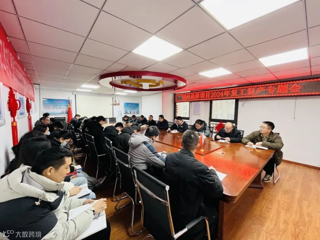 2月20日,项目召开复工复产专题会,部署安排2024年工作,并组织到岗人员开展安全生产教育,切实做好复工准备工作。