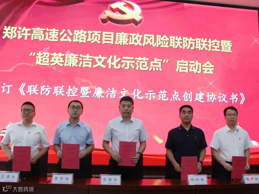 联创五方共同签订《项目廉政风险联防联控暨“超英廉洁文化示范点”创建协议书》。