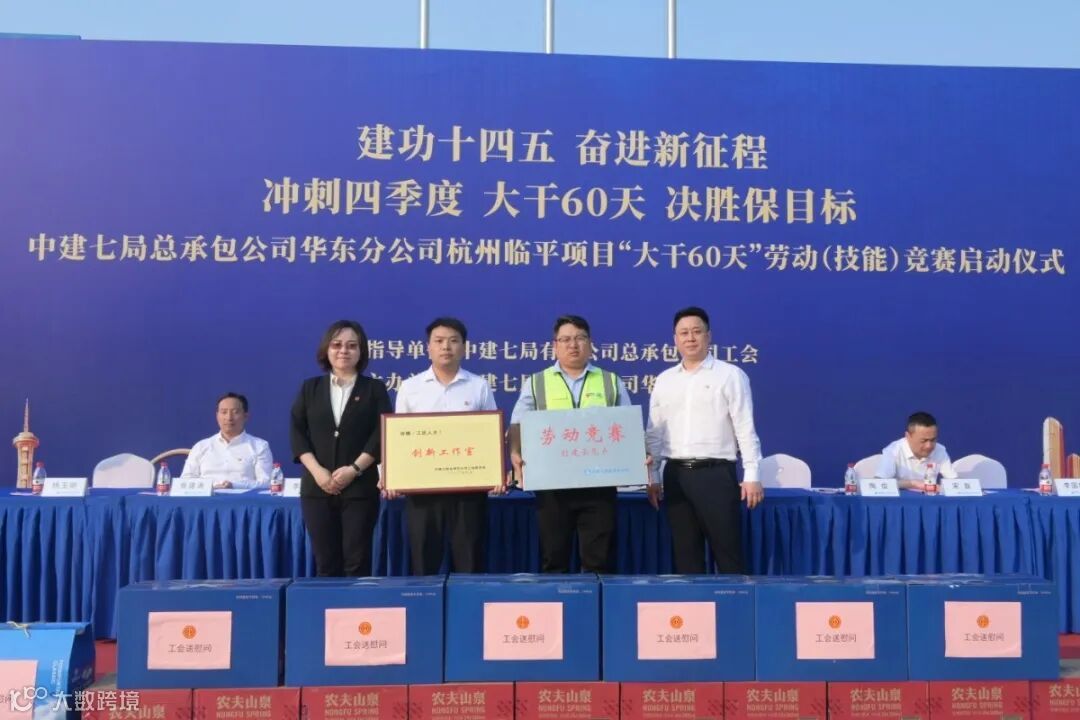 为充分发挥竞赛引领作用,激发广大职工工作热情,助推项目高效建造、优质履约,10月30日,杭州临平项目举行“冲刺四季度、大干60天、决胜保目标”2023年劳动(技能)竞赛启动仪式。杭州南苑控股(集团)有限公司副总经理朱广恒;公司党委副书记、工会主席陈延春,工会工作部部长李嘉佳;华东分公司党总支副书记、执行总经理陶俊,党总支副书记、工会主席杨玉刚,副总经理、总工程师訾建涛,副总经理宋磊,相关部门及项目管理人员和工友代表等100余人参加。活动由杨玉刚主持。