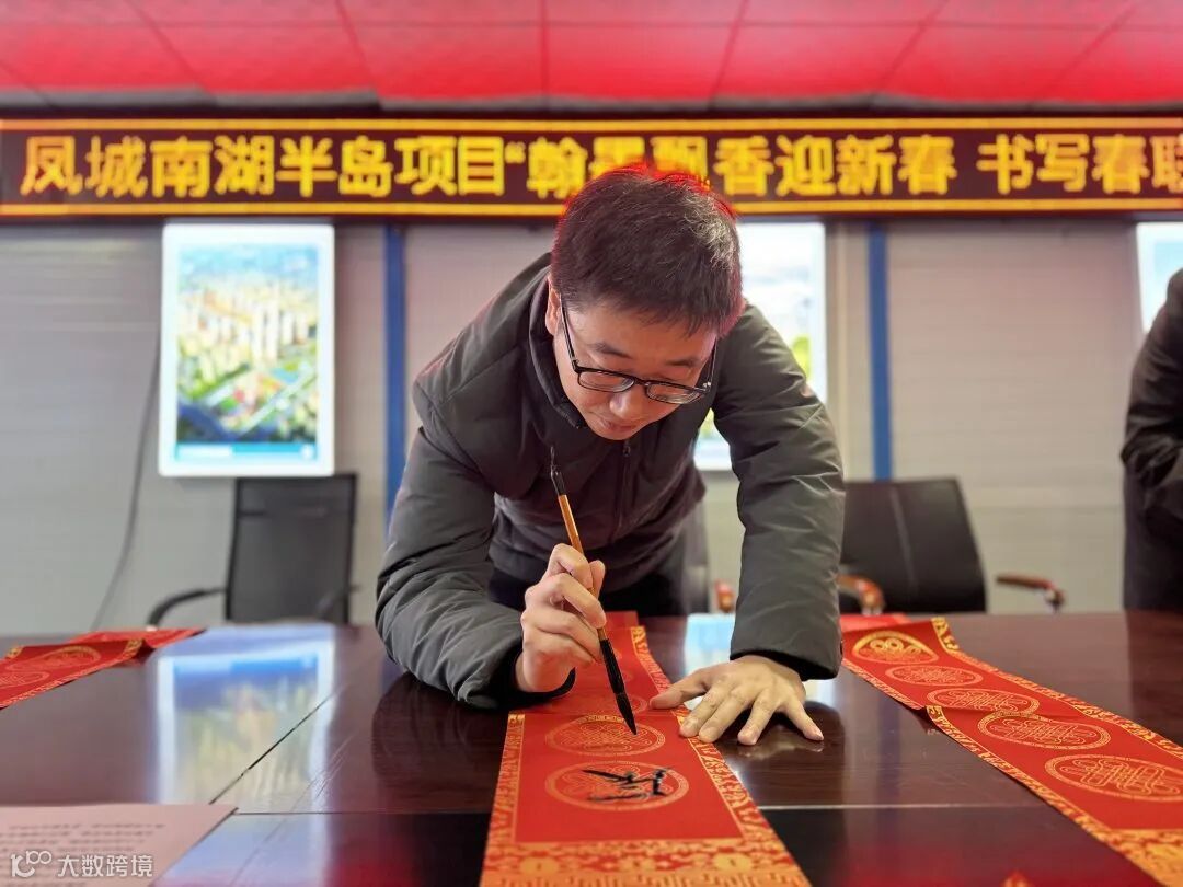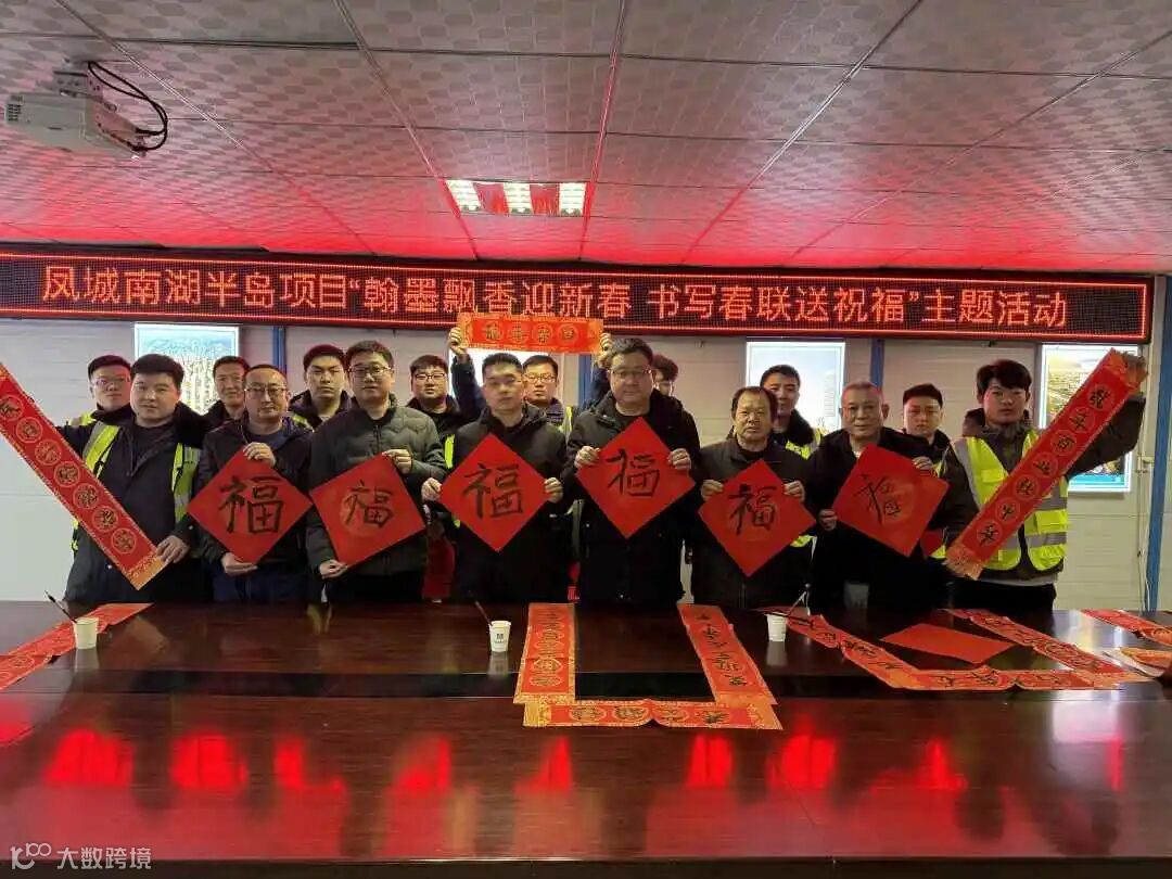 凤城南湖半岛项目开展“翰墨飘香迎新春 书写春联送祝福”主题活动,邀请业主、监理和职工代表手写对联及福字,为工友们送上美好祝福。