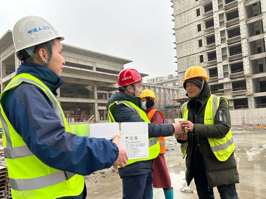 郑州泉舜项目部向坚守在一线的劳务工友送上腊八粥、口罩,叮嘱他们注意身体,让在外打拼的工友感受到浓浓关怀。