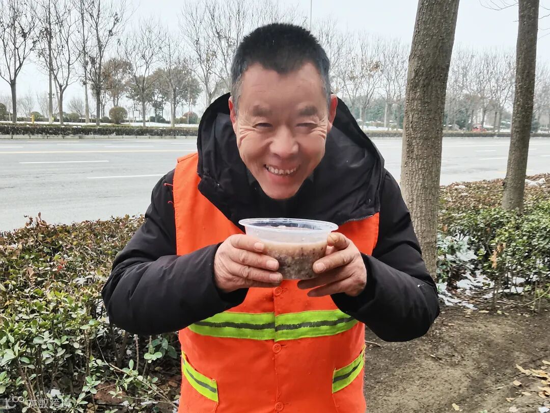 濮阳区域项目志愿者为附近街道环卫工人送去腊八粥、棉手套等慰问品,传递冬日温暖。