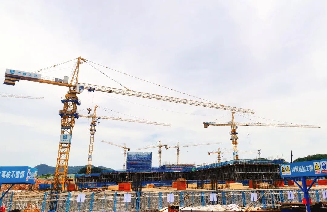 挺立高空直面烈日,滚烫的吊钩忙碌不停,托举起建设医疗新基地的重任。