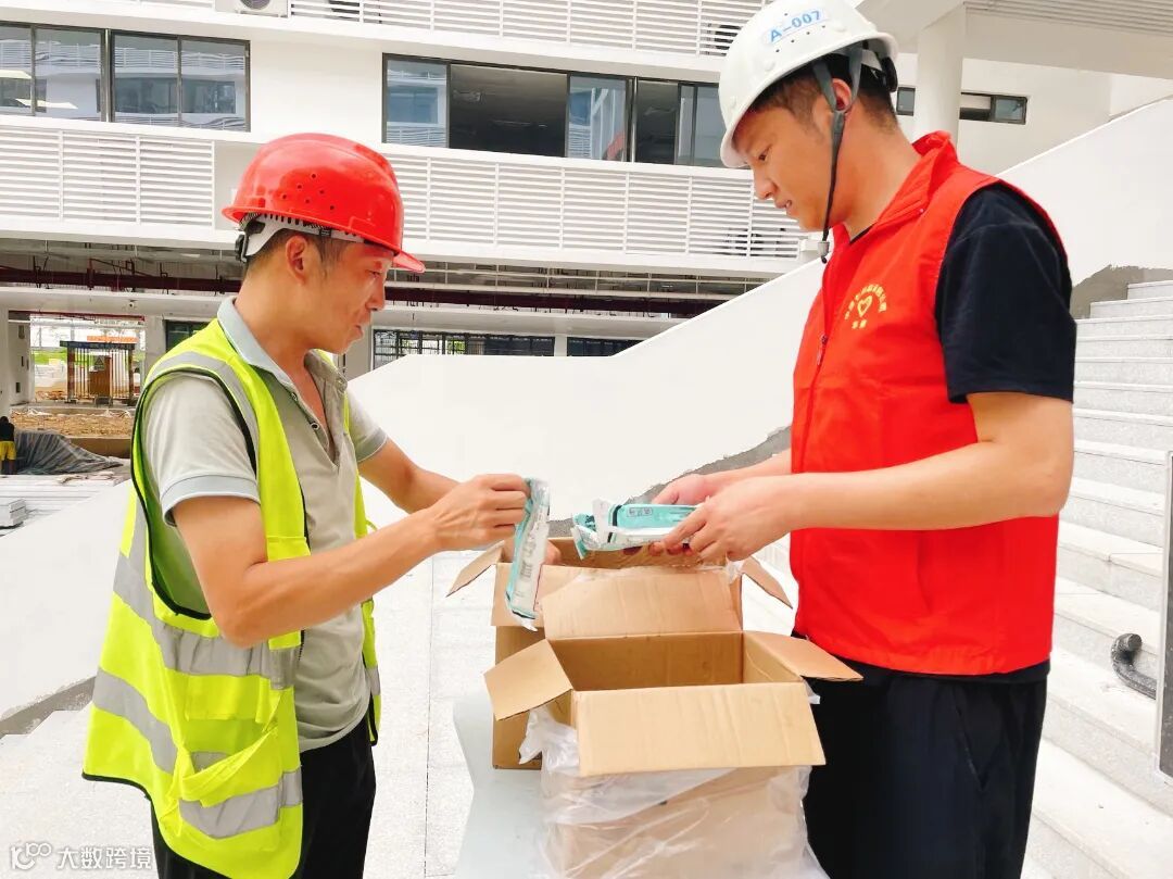 夏日炎炎赶工忙,施工场景像天气一样火热,补充完水分继续并肩“战斗”。