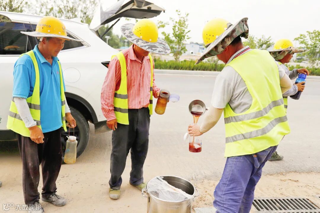 施工间歇时,来一碗项目部送来的绿豆汤,清热消暑又解渴!