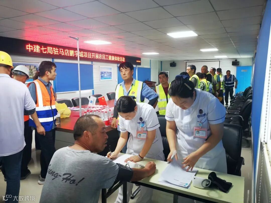7月19日,河南分公司驻马店鹏宇城项目邀请专业医护人员上门为项目劳务工友进行健康体检。