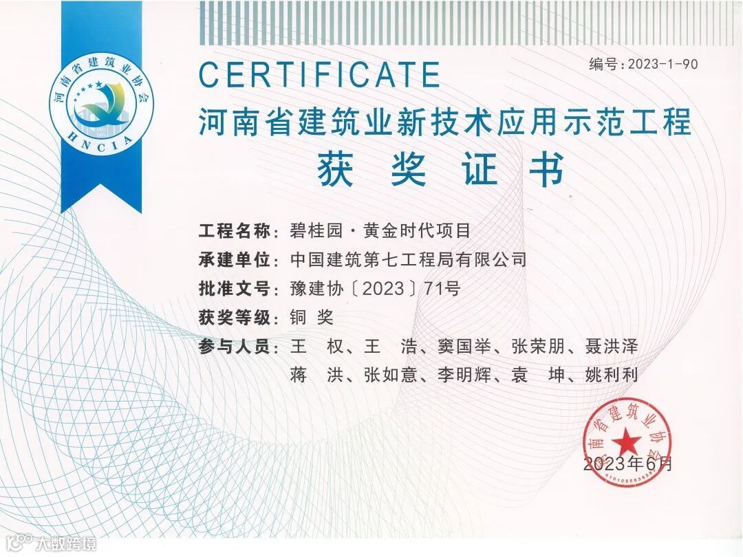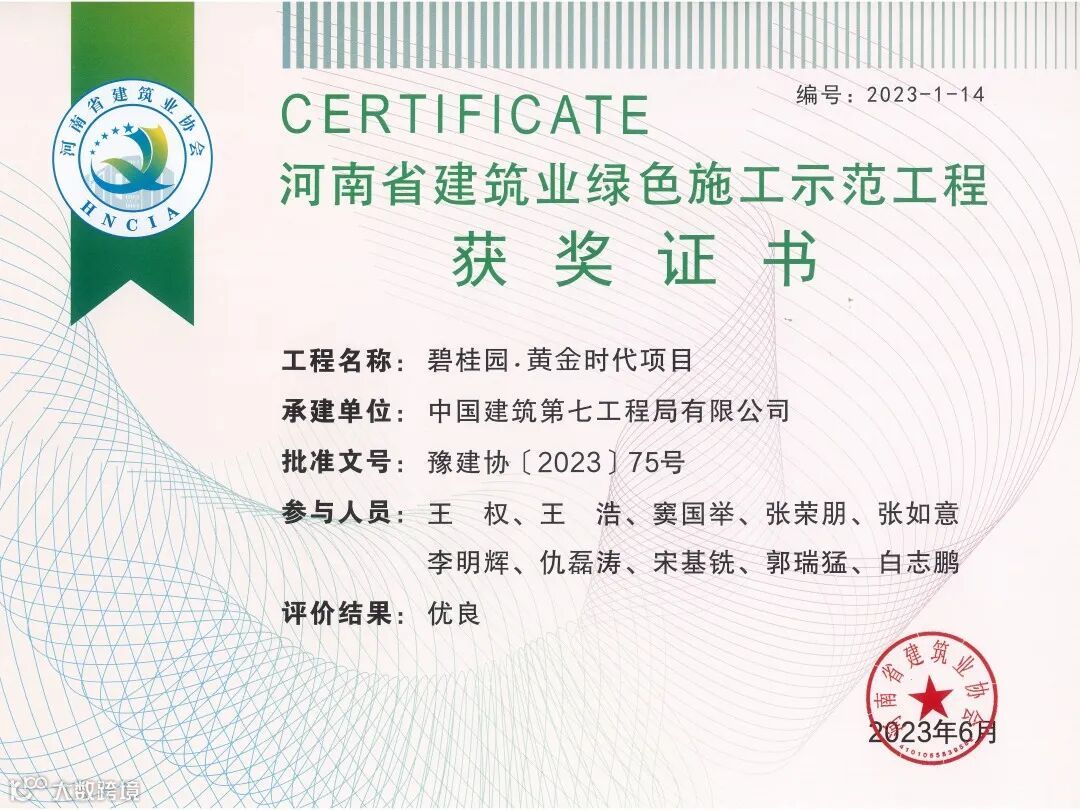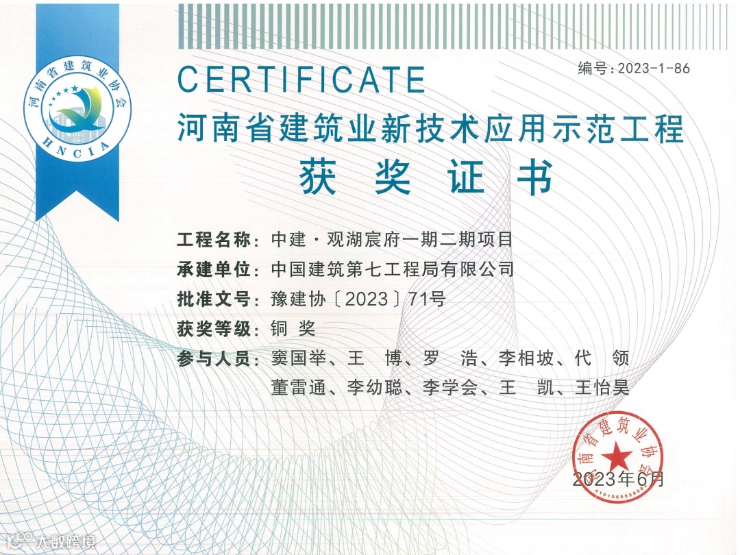 近日,郑州分公司濮阳项目、商丘中建·观湖宸府项目获评河南省建筑业绿色施工示范工程(优良)、河南省建筑业新技术应用示范工程(铜奖)。