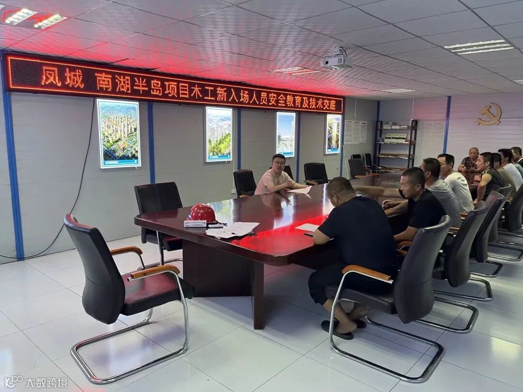 7月20日,华北分公司凤城南湖半岛项目对木工新入场人员开展安全教育及技术交底。