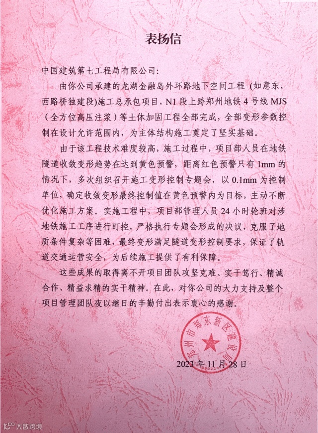 近日,金融岛地下空间项目、数字小镇市政项目、安阳市北关区老旧片区提升改造项目因优质履约分别获业主表扬信。