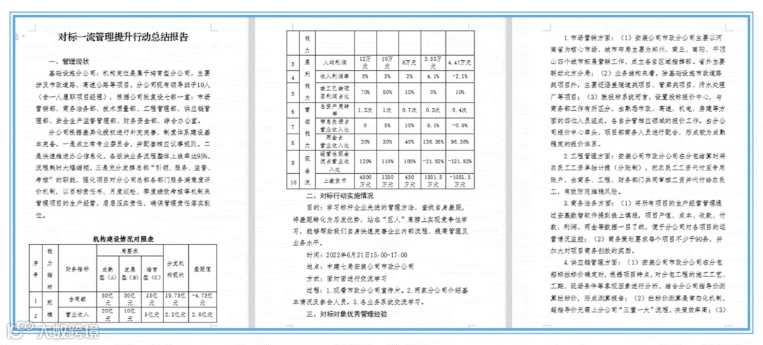 解题措施四:不懈推动对标学习博采众长。围绕市场营销、项目履约、技术优化、商务创效等主题开展对标学习4场,100余名管理人员参与,广泛交流经验促提升;与政府部门、业主单位、兄弟单位开展党建共建3场,搭建平台推动40余名党员干部加强与相关单位的互动,集思广益引领、推动市场开拓再接高速公路项目“大单”;重点项目履约在兄弟标段中一马当先,4类技术创新成果稳健增长,重点工作再创佳绩。