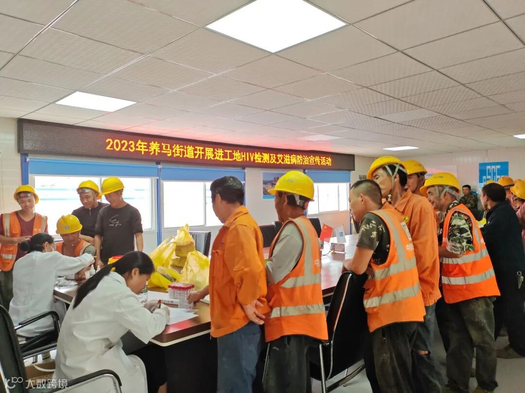 10月17日,成都东部新区养马街道社区医院到分公司西部检测认证“双碳”菁蓉谷项目开展进工地HIV检测及艾滋病防治宣传活动。
