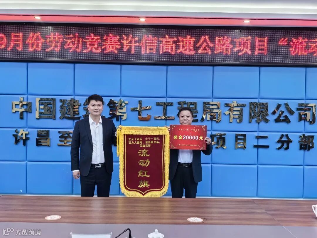 10月22日,分公司党总支副书记、执行总经理金鼎为许信高速公路项目颁发分公司劳动竞赛9-10月份流动红旗。