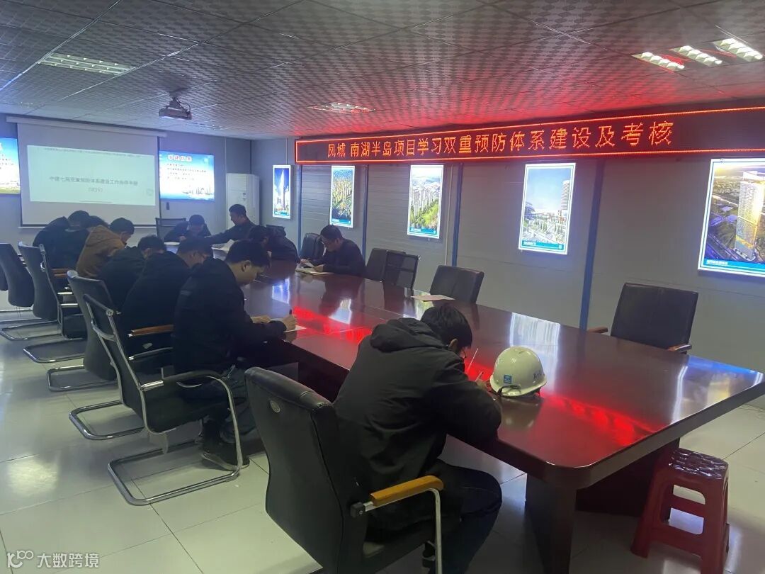 10月21日,分公司凤城南湖半岛项目开展双重预防体系建设学习并进行考核。