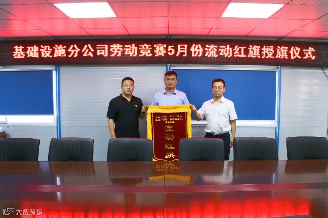 6月7日,分公司党总支副书记、工会主席杨国伟,副总经理徐海岩为金融岛地下空间项目颁发分公司劳动竞赛5月份流动红旗。