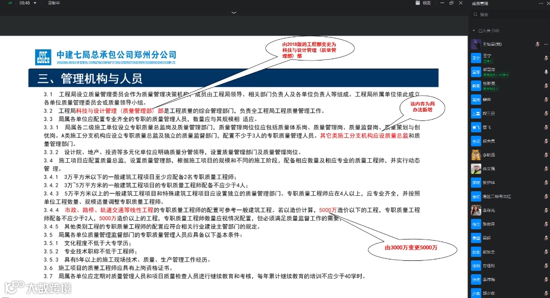 6月9日,分公司以线上形式开展2023年第三期“技术负责人讲规范”及《质量管理办法》培训。