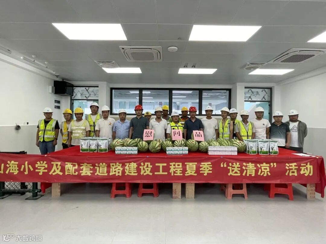7月27日,经理部助理总经理饶金辉赴山海小学项目慰问一线工人,为工友们送去清凉解暑物品。
