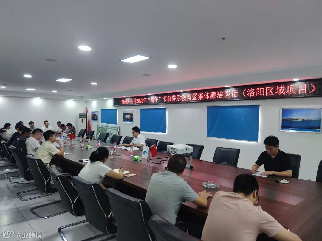 6月12日,分公司纪检审计部到洛阳区域项目开展重点攻坚工作专项监督推进会、2023年度“六个专项行动”督导会,并对管理人员进行了端午节前警示教育和集体廉洁谈话。