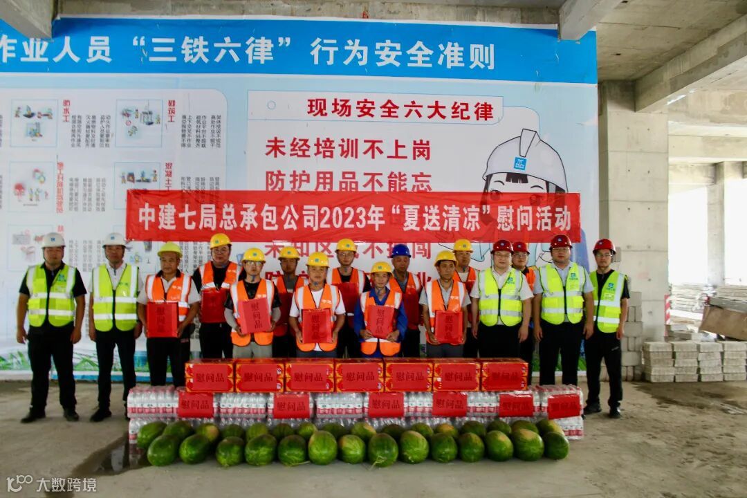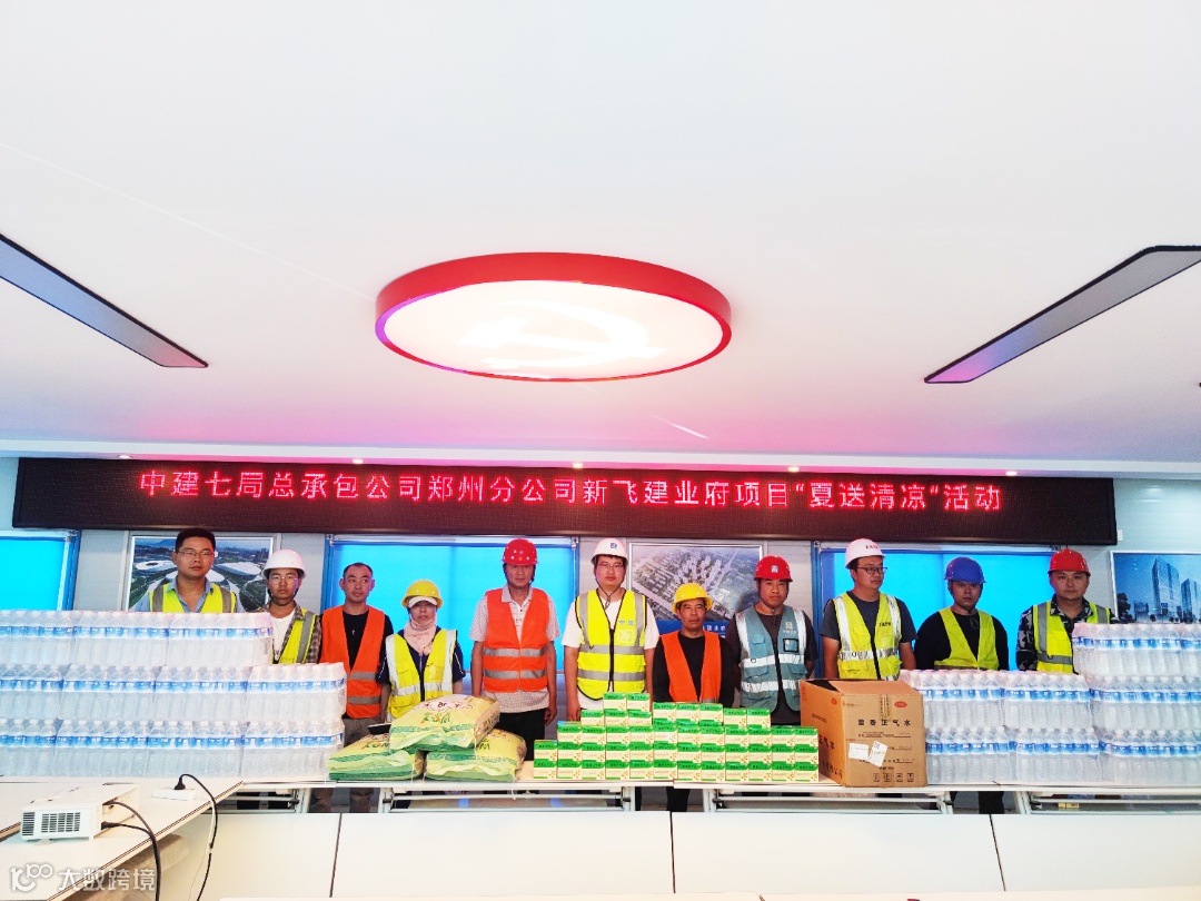 郑州分公司新乡项目、信阳项目、中博项目分别开展关爱农民工“夏送清凉”活动,为一线职工送上矿泉水、藿香正气水、西瓜等防暑物资,同时提醒大家做好防暑降温工作,各班组在保障安全和工作进度的前提下,根据天气情况合理安排工作时间,为项目安全生产保驾护航。