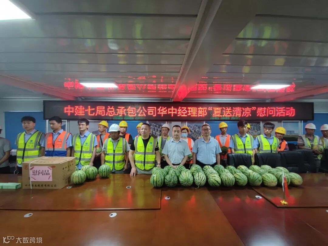 西南分公司西充智慧产业园项目为一线职工送去了王老吉、大西瓜、矿泉水、冰红茶等一批清凉物品,将工会的温暖、关爱送到酷热中奋战的一线职工心坎里,让大家在炎炎夏日工作中感受浓浓关怀。