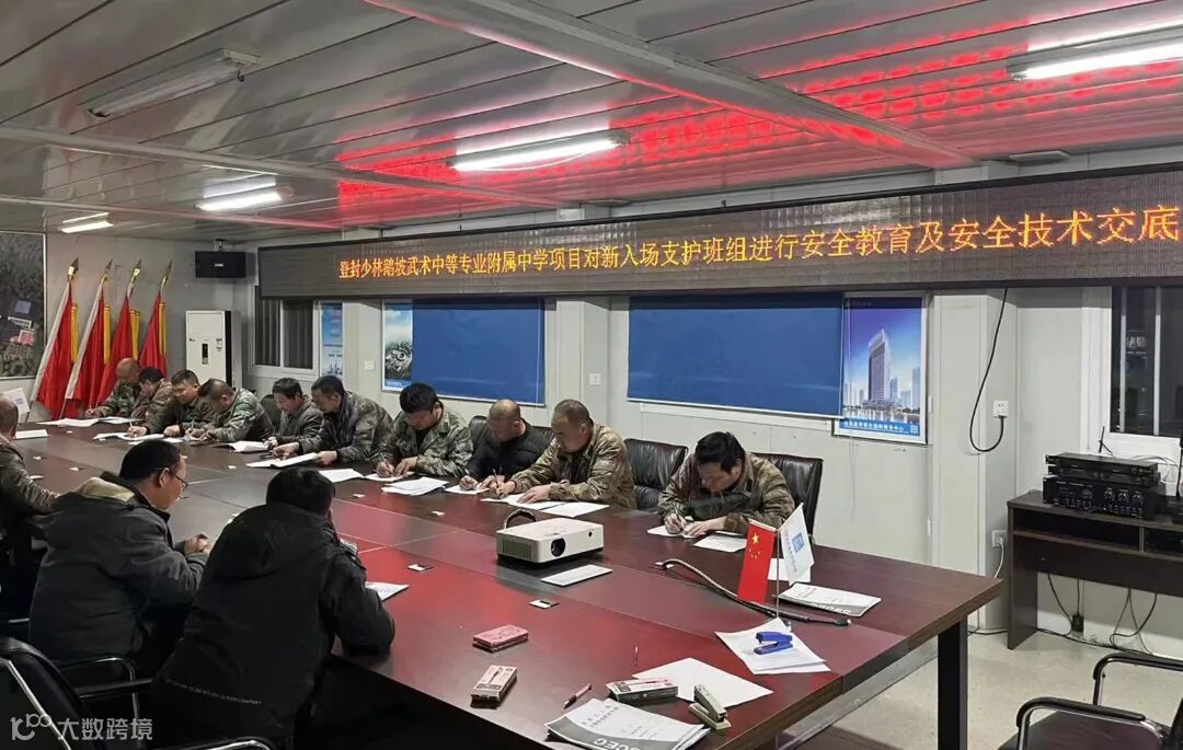 2月21日,河南分公司登封市少林鹅坡武术中等专业学校附属中学项目组织主体钢筋及混凝土班组和水电安装及支护班组开展安全教育及安全技术交底会。