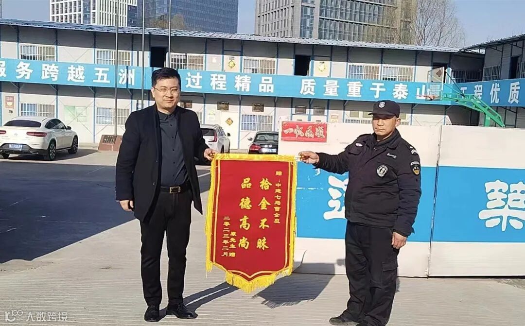2月20日,郑州分公司郑州区域项目保安拾金不昧获失主赠送锦旗。