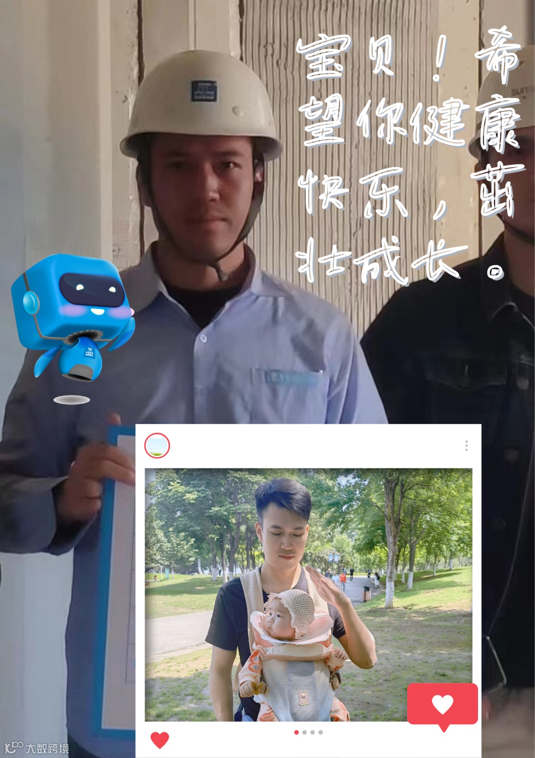 宝贝,爸爸希望你每天都开开心心,健康快乐地成长,爸爸爱你