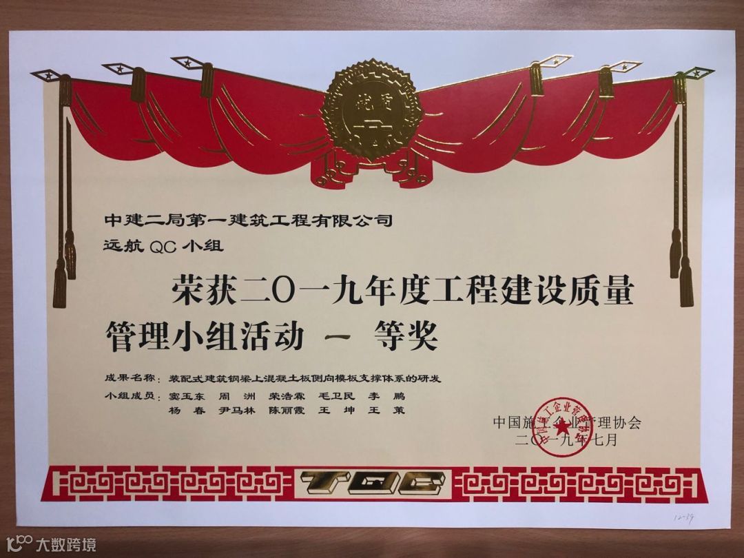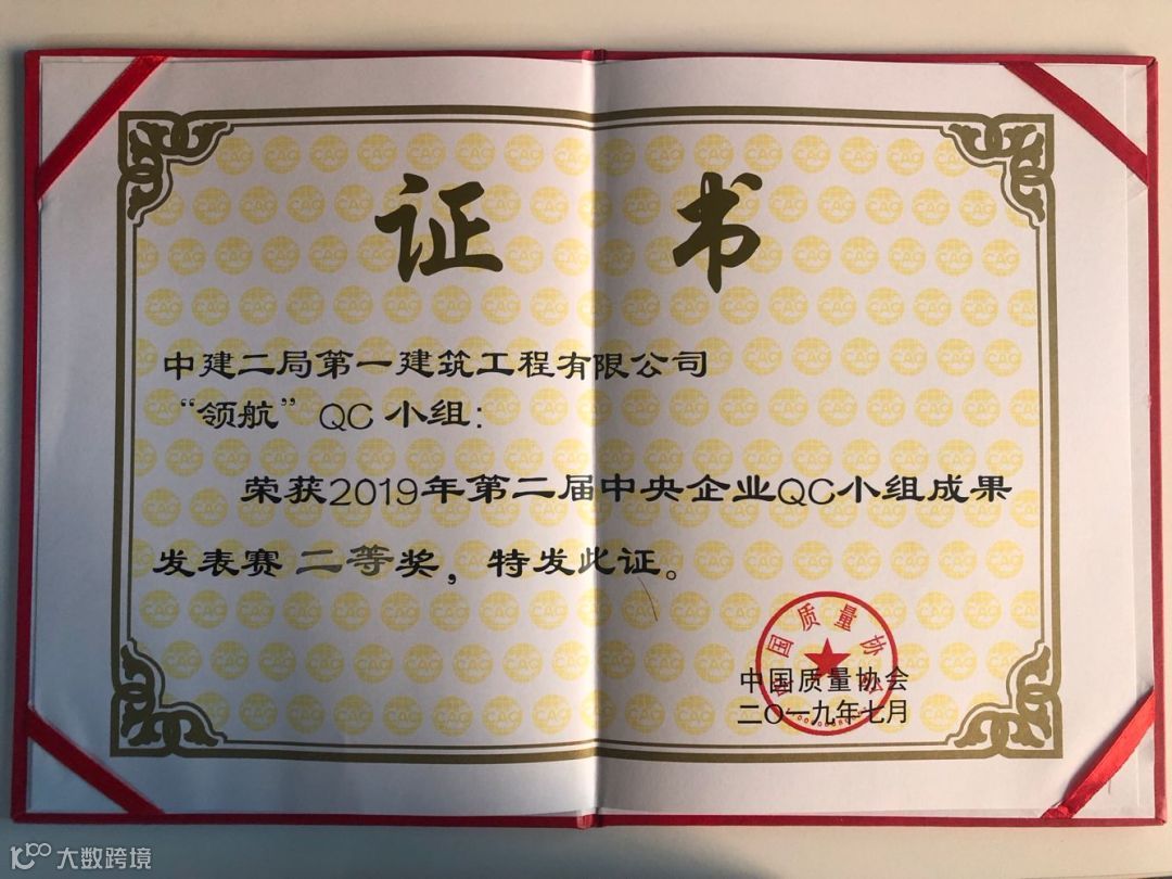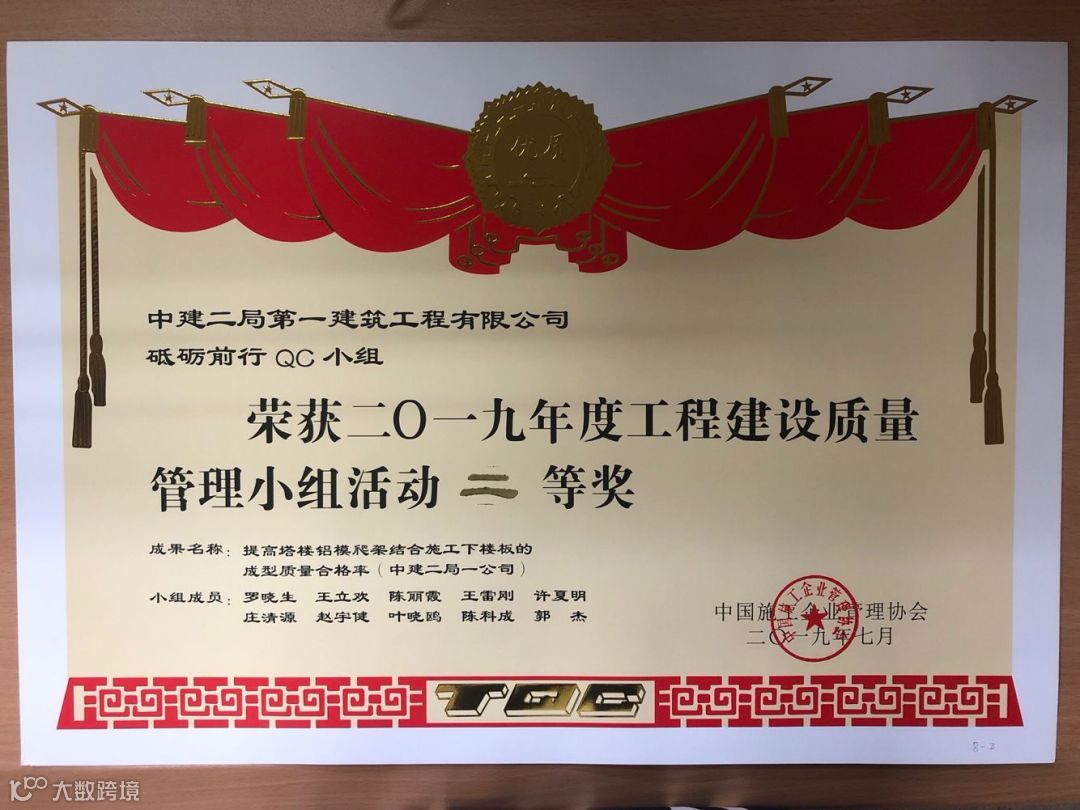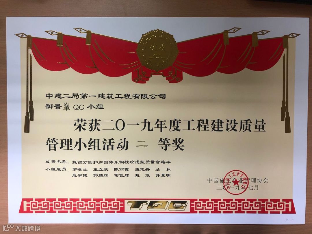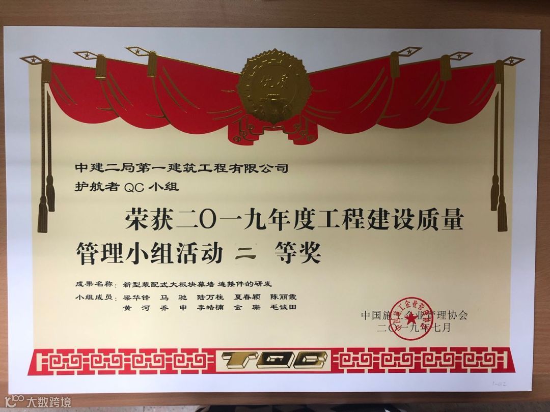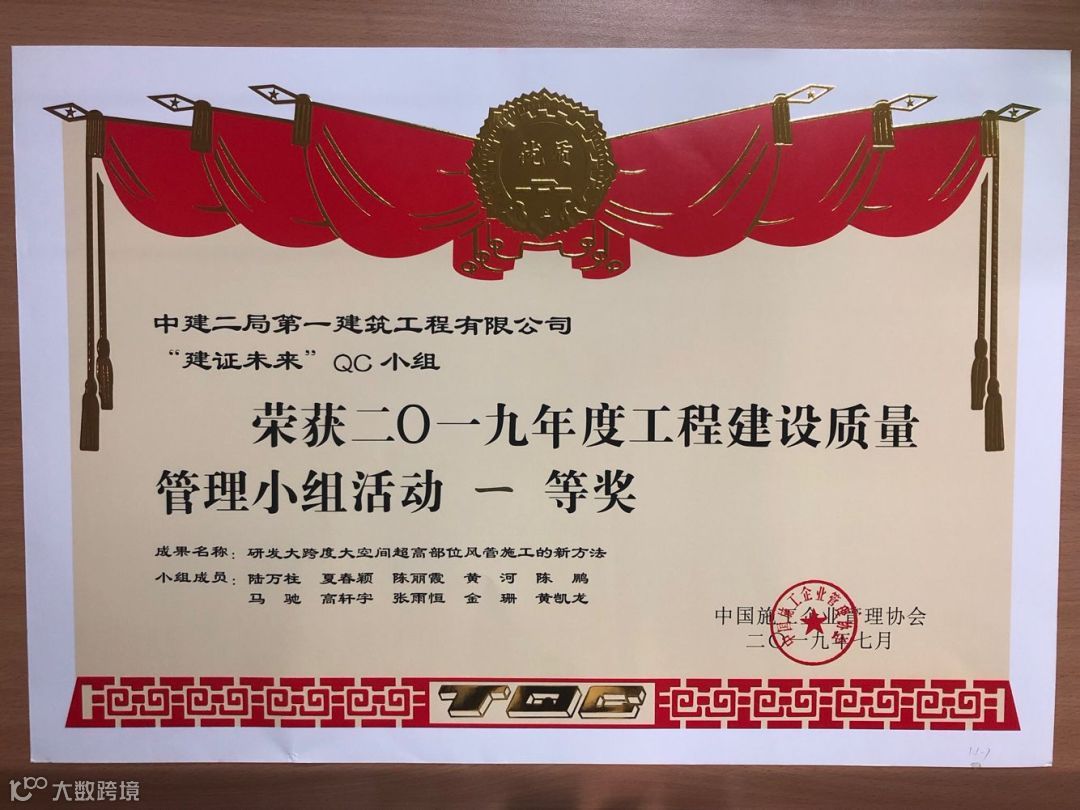 其中“建证未来”QC成果获得国家最高QC质量奖(全国优秀质量小组)。全国施工企业仅5个,中建系统唯一获此殊荣。