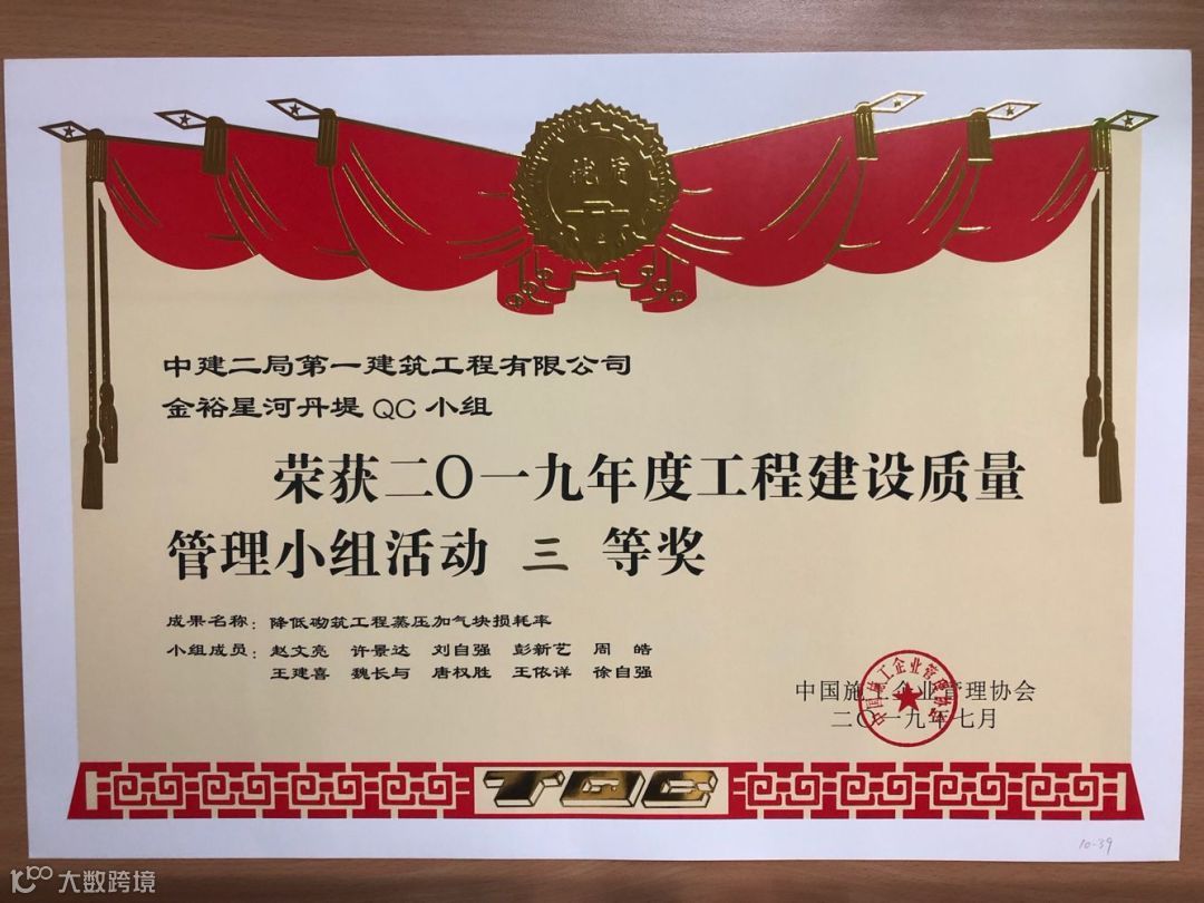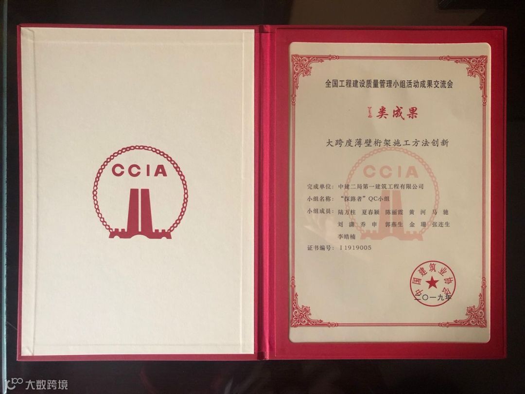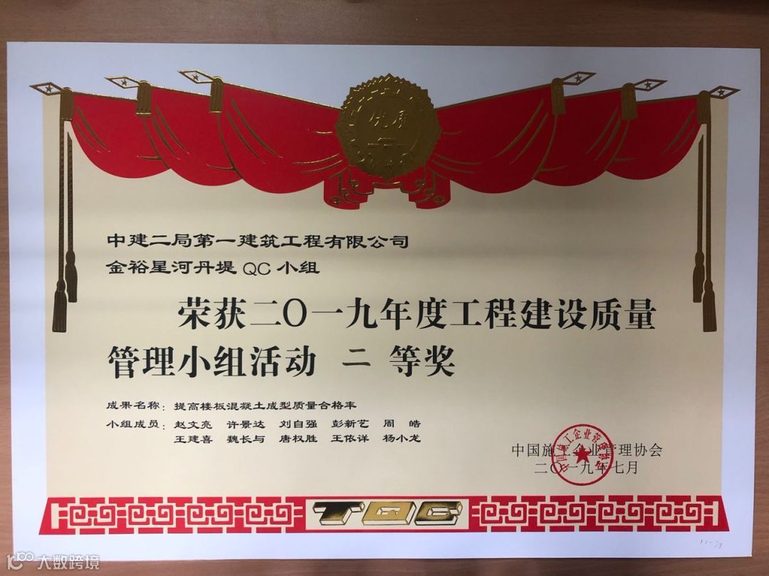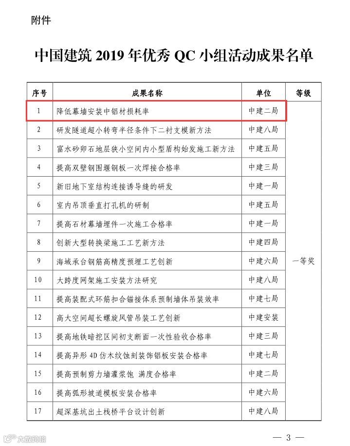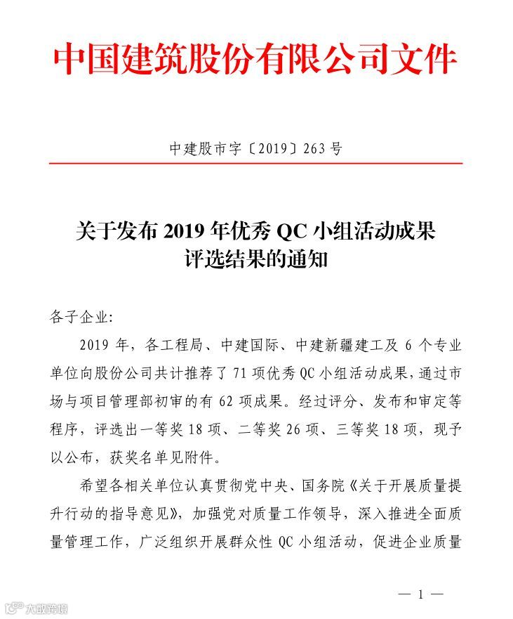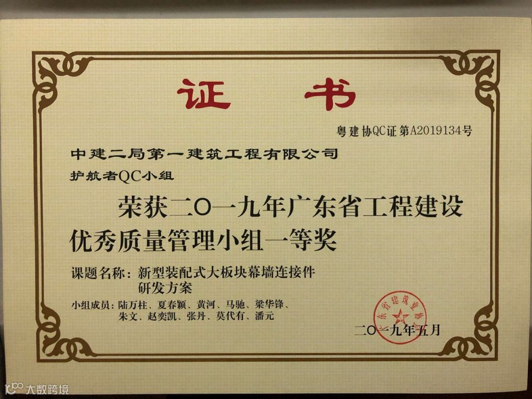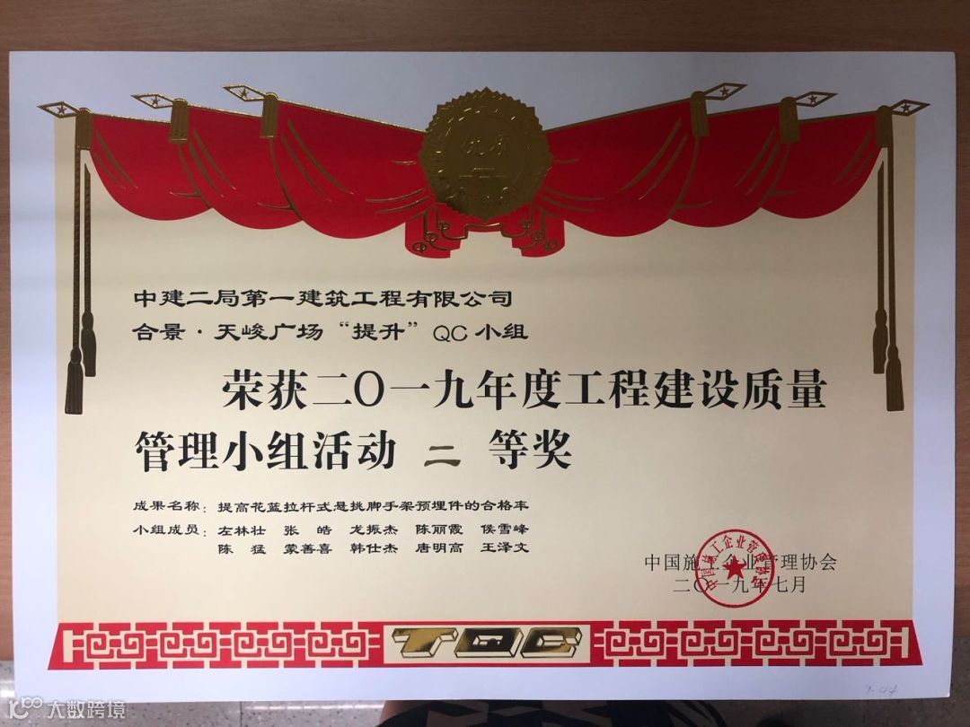 其中“建证未来”QC成果获得国家最高QC质量奖(全国优秀质量小组)。全国施工企业仅5个,中建系统唯一获此殊荣。