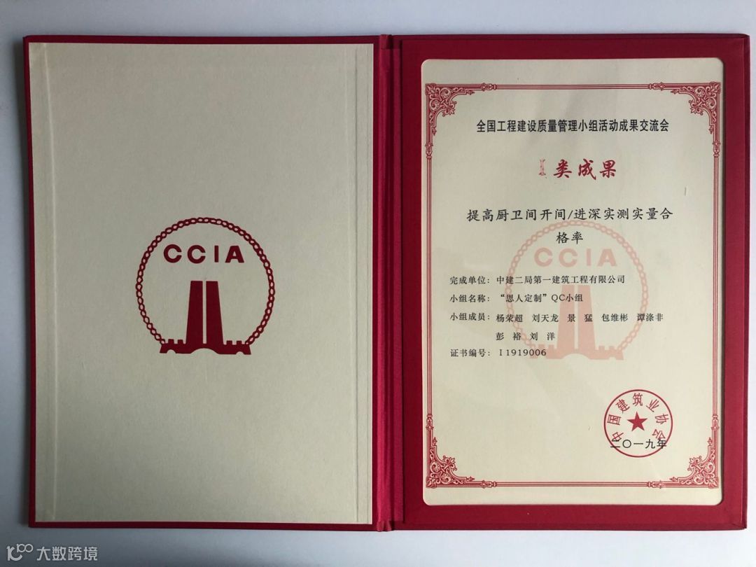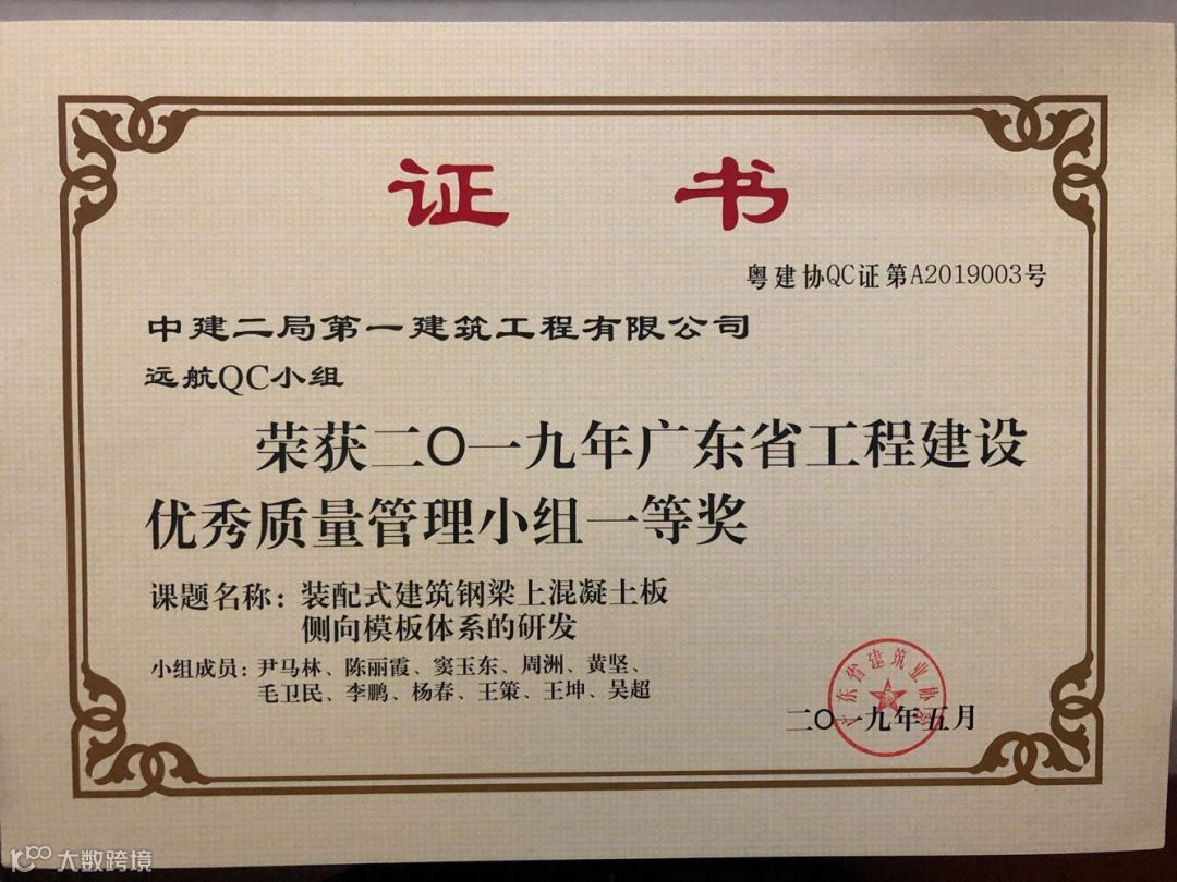 机场六期领航城领逸大楼项目“领航”QC小组荣获中国建筑2019年优秀QC小组活动成果一等奖第一名;