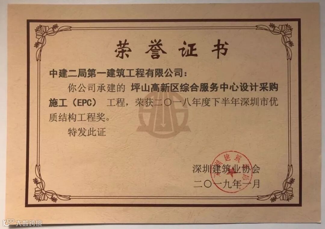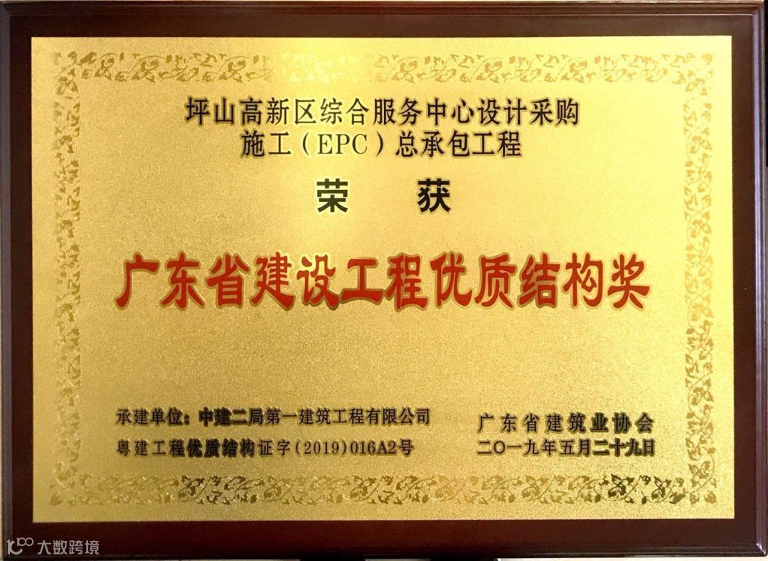 这是我司2019年度继坪山高新区综合服务中心设计采购施工总承包(EPC)工程以后再次获此殊荣。