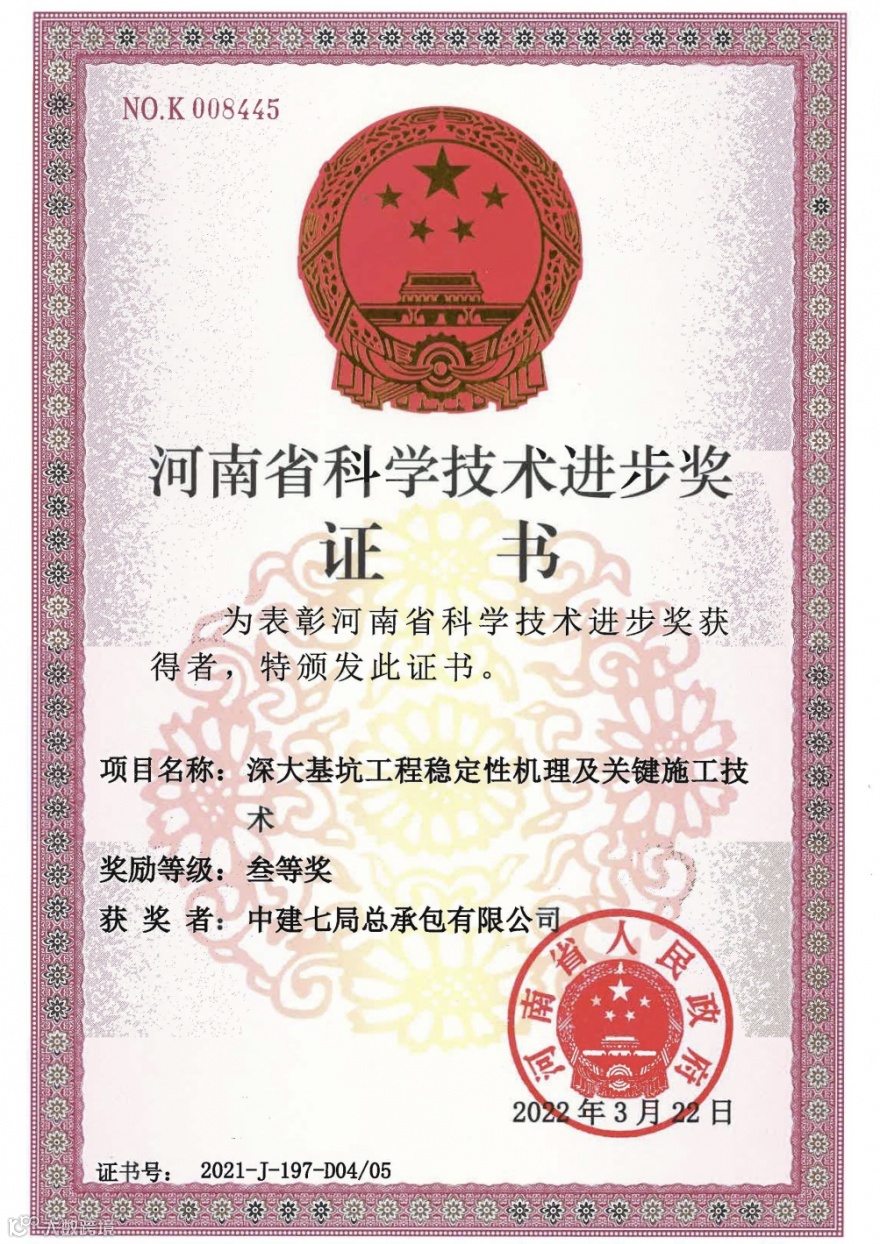 依托滨河国际新城孵化园区、中原科技城等重点项目,开展局级课题研发工作,基于建筑缺陷检测技术申报局级课题1项,围绕深大基坑、施工设备、地铁保护、钢结构、建筑损伤监测等申报课题4项,立项河南省科技示范项目6项,获得省政府科技奖2项、省级科技奖2项、科技成果5项,局级科技奖1项。
