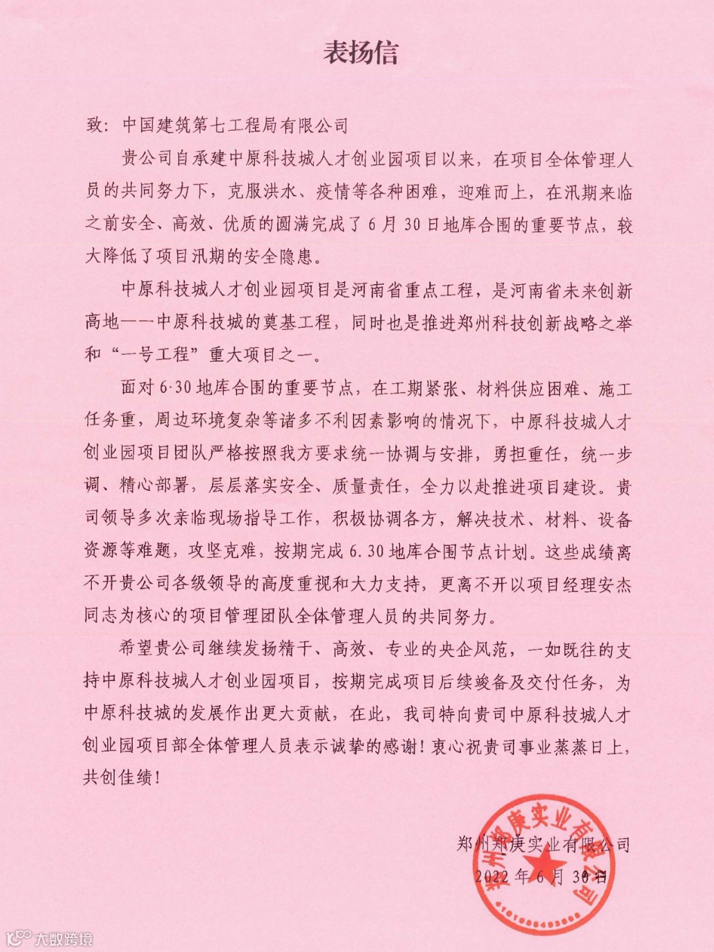 中原科技城智慧产业创新园项目提前15天实现全面封顶,舞钢、开封等4个项目完工交付,焦作项目因优质履约获得业主表彰7次。先后承办河南省建筑施工安全生产标准化暨防汛应急演练现场观摩会、河南省住建系统2022年“质量月”暨工程质量提升交流观摩会、河南省2022年行业职业技能大赛“中建七局杯”砌筑工大赛、郑州市第八届职业技能竞赛建筑行业砌筑工钢筋工大赛等活动20余次。