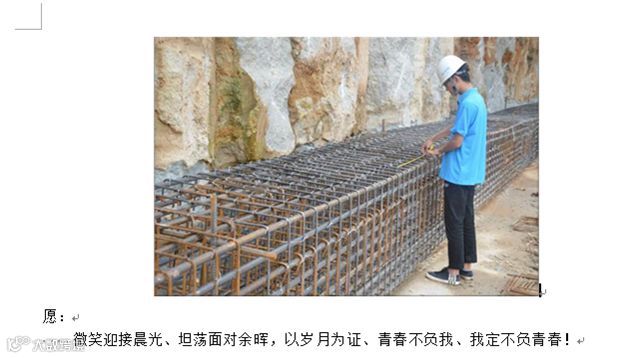 也许、生活尚不如意;也许、前路仍有风雨。但是,不必焦虑,人生路上只有奋斗才能给你安全感。热爱自己的工作,完成自己的职责,努力去证明自己的价值,做一名优秀的“中建人”。(张婷婷)