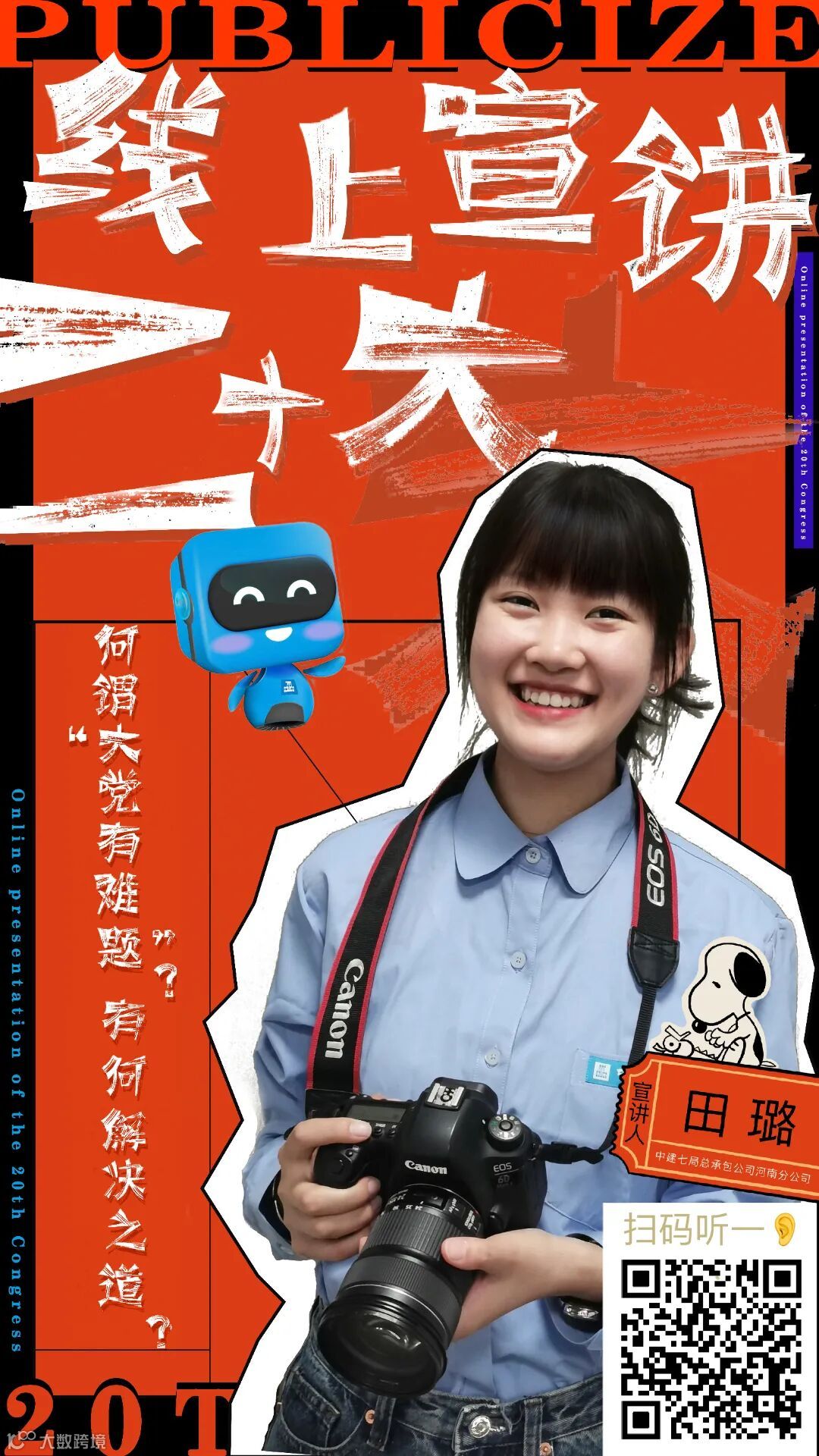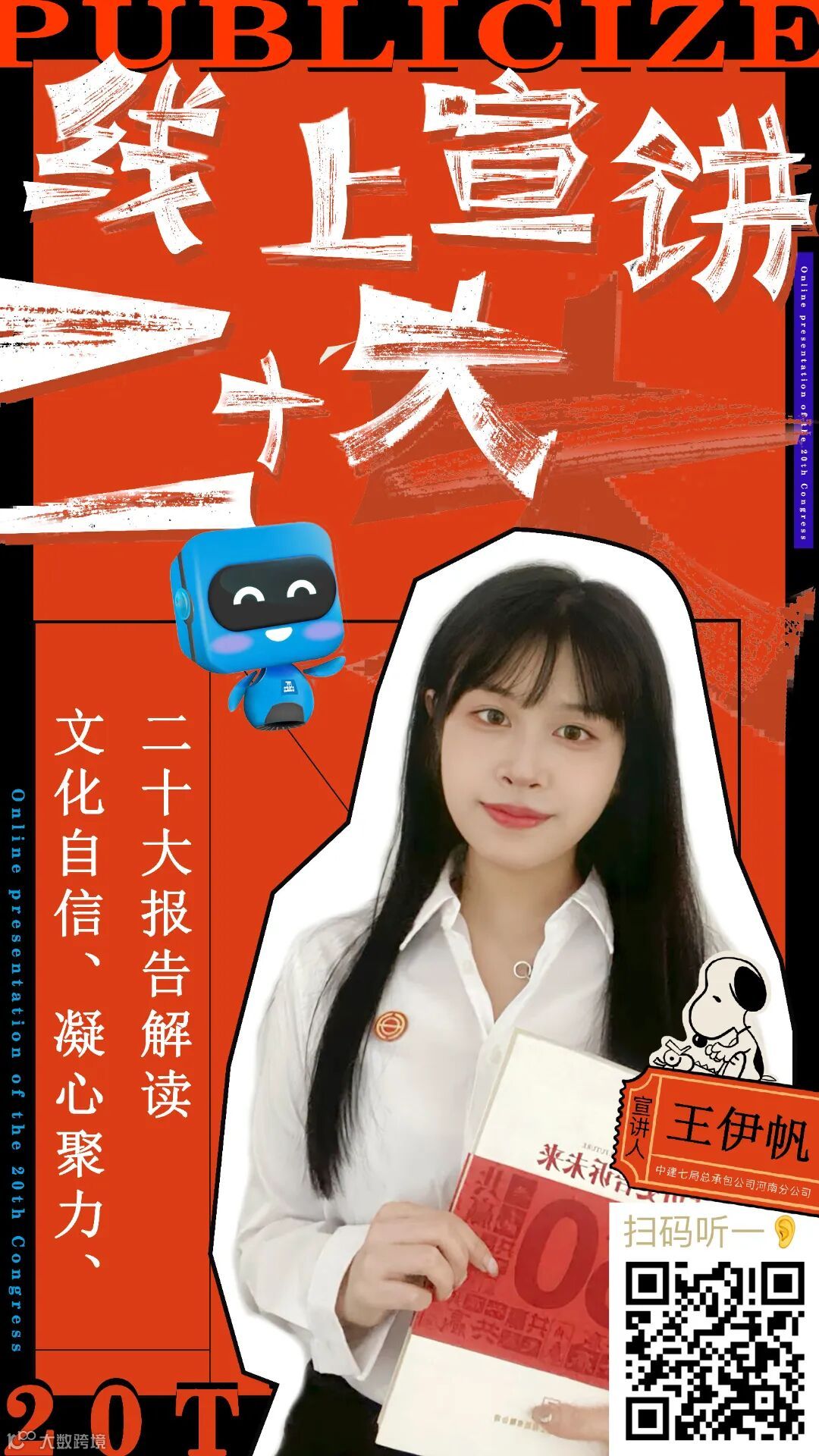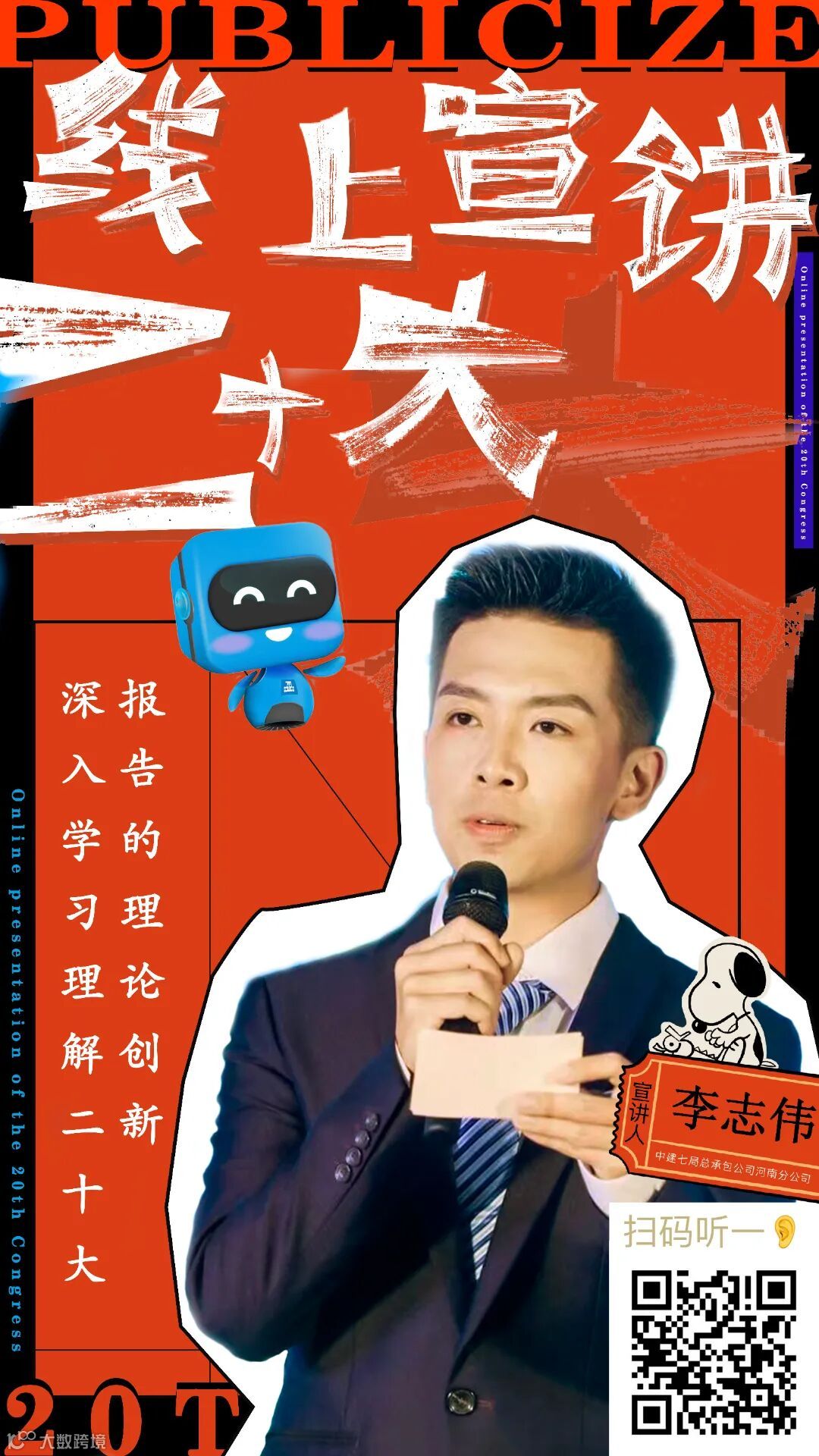 青年职工担任线上宣讲员,以通俗易懂的“腔调”、接地气的方式将官方语言变成通俗语言,把高深理论变成朴实道理,并将宣讲内容录制成音频,制作成二维码海报,将海报发至各项目、张贴在施工现场,方便职工工友随时随地“码”上学习。