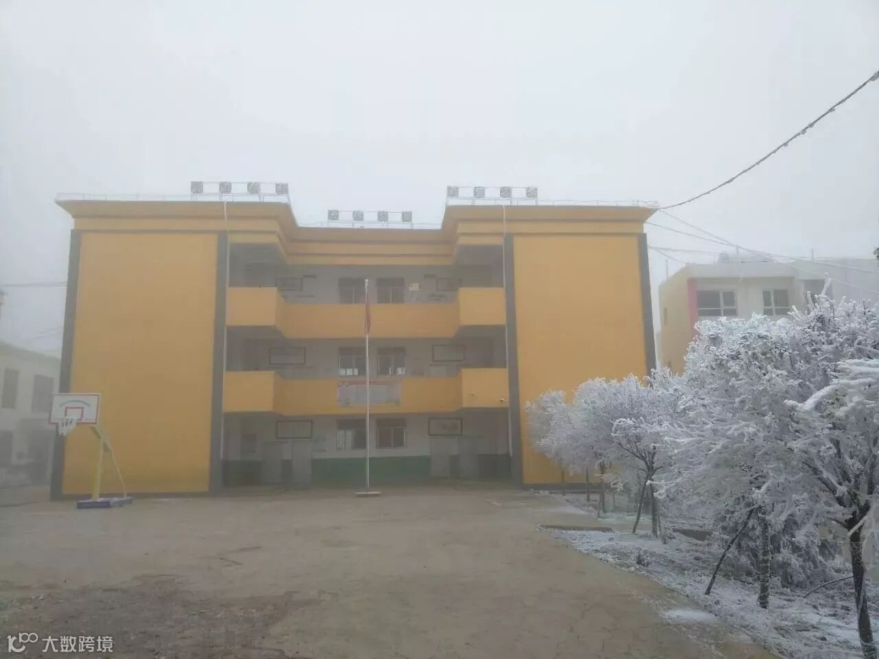 从学校提供的照片上可以看到,转山包小学的大门、校园里的树木上都结满了冰花,教室里有的孩子双手满是冻疮,让人心疼。
