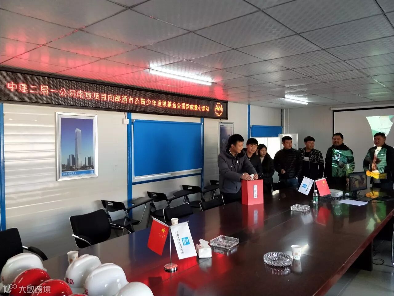 (图为机场六期项目管理人员捐献爱心款瞬间)