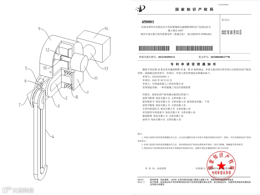 该成果为一种房建施工用定位放线装置,涉及房建施工放线技术领域。包括固定主框、固定主框内壁的固定滑板、放线机构、及其内部的滑动框、摆动长条、固定框和转动球。通过辅助弹簧、固定框和转动球,可以抵消线盒中的线垂直产生的拉力,使线通过摆动长条可以垂直下落,提高了放线的精准性。