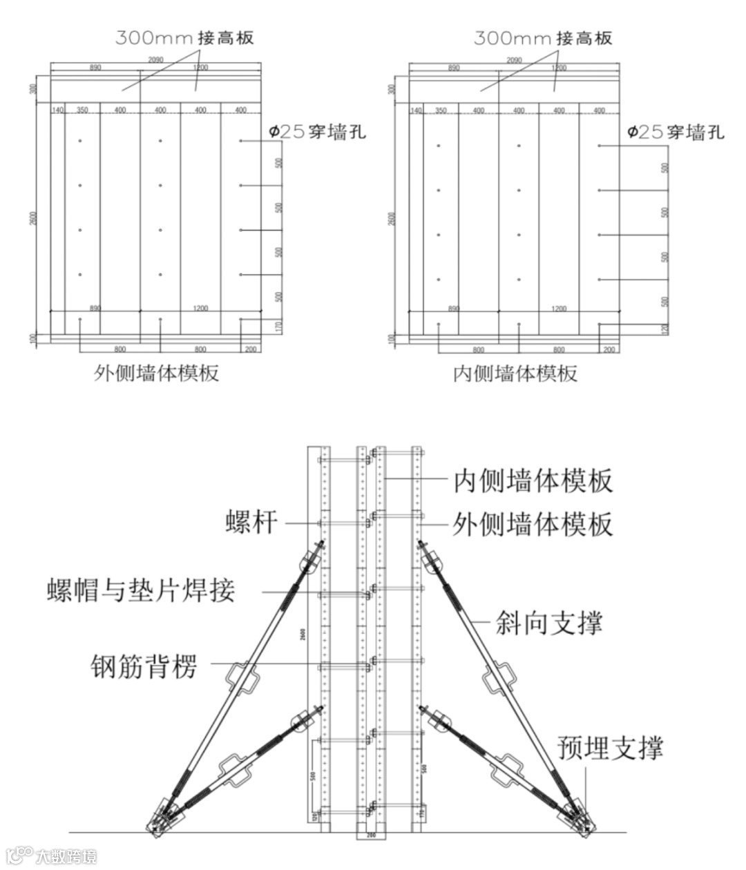 狭长伸缩缝墙体两侧铝合金模板加固施工工法