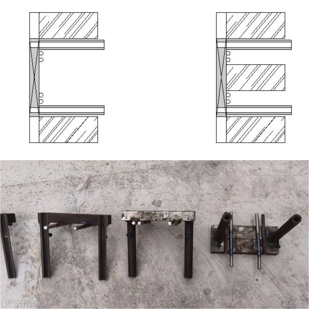 该成果为一种钢木结合模板拼装连接的锁扣装置,通过一种新型的锁扣连接模板,再利用楔形块穿过锁扣中预留的孔洞来自由调节卡扣的松紧,适用于各类尺寸背楞,快速固定模板,解决了传统螺栓连接费力费时的问题。该装置简化了模板背楞加工工艺,省去了法兰加工工序,在实际使用过程中,大大提高了模板安装及拆除效率,提升了模板周转率。