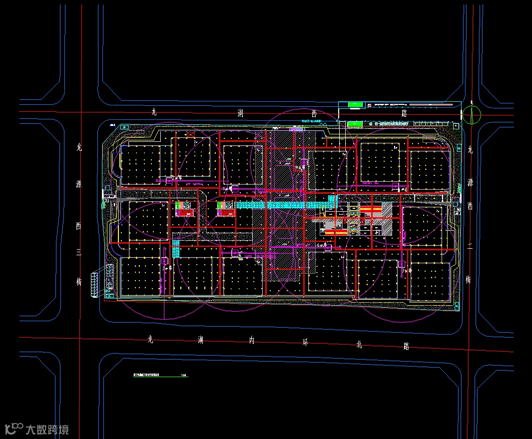 施工道路有实用。项目策划实施过程中注重永临结合,通过方案优化,将施工现场贯穿东西的施工道路以及东西区钢筋加工料场的顶标高与垫层顶标高设为一致,前期施工准备阶段精准控制标高,车库收尾阶段转化为垫层,节省了混凝土用量,减少了建筑垃圾产生。