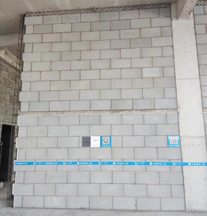 BIM技术+砌体排布。二次结构施工阶段,项目运用BIMMAKE软件进行精细化建模,根据中建集团标准,结合图纸、规范、图集,使用BIM5D平台深化砌体排砖,导出相关工程量与图纸,进一步指导现场施工。运用三维可视化排砖,辅助现场材料管控,合理组织材料进场,有效提高了施工效率;减少了砌块二次搬运和随意栽切,避免材料浪费,减少建筑垃圾,节约了施工成本。