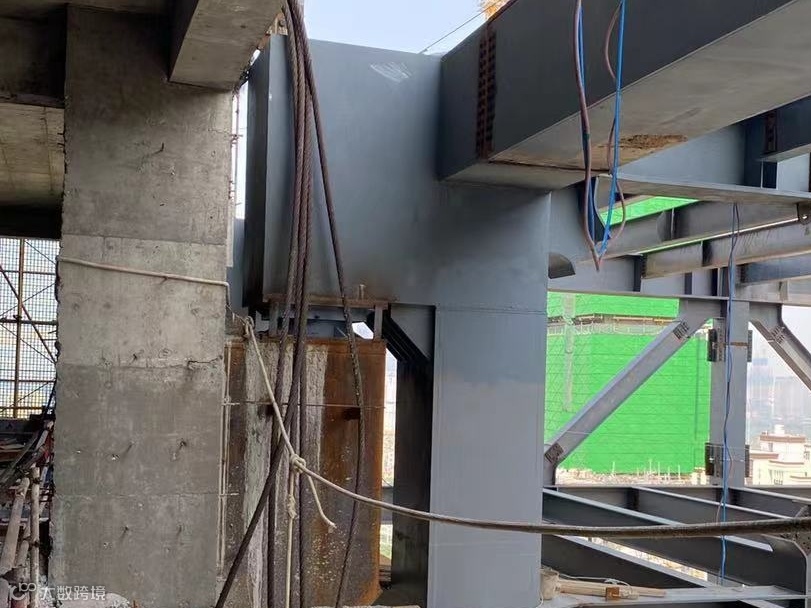 该工法由滑动支座和球型铰支座组成。地震时,依靠滑动支座的滑移来抵消钢梁与混凝土之间产生的相对位移,降低直接作用在建筑物上的地震力及层间变形。通过球面聚四氟乙烯板的滑动来实现支座的转动过程,转动力矩小,而且转动力矩只与支座球面半径及聚四氟乙烯板的摩擦系数有关,与支座转角大小无关。而且采用抗拉、抗剪的特殊结构,具有能抗地震烈度9度的能力,可有效的解决钢结构抗震问题、复杂结构施工问题。