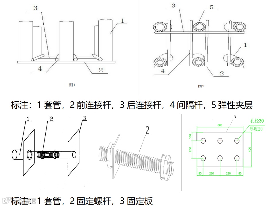 该成果是一种可重复利用的塔吊附着穿墙丝预埋孔装置,由多根垂直贯穿墙体的套管、连接杆、固定螺杆和固定板组成,工作原理为:在混凝土浇筑前,将此装置放于剪力墙内横竖钢筋交接处,套管初步固定在连接杆上,用固定螺杆穿入套管使用固定板进行二次定位,形成一个整体。在附着顶升时可将固定螺杆和固定板取出,将穿墙丝穿入预埋孔洞中,达到使用效果。