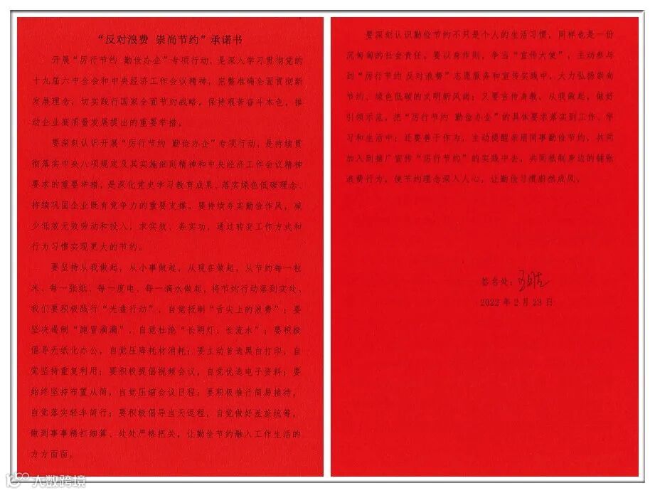 广泛引导倡行。向广大员工发出广泛倡议,签署“反对浪费 崇尚节约”承诺书,开展“厉行节约 勤俭办企”主题党日活动及主题知识竞赛,引导、激励广大职工从当下做起、从细微处做起,增强勤俭节约行动自觉,保持艰苦奋斗本色。