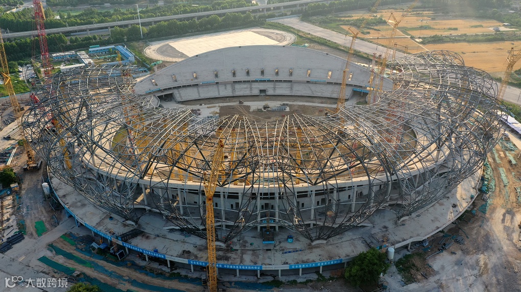 许昌体育会展中心项目团队结合项目特性,通过技术创新,优化钢结构吊装方案,有效提高拼装精度及焊接质量、降低了高空作业风险;采用矢高法,由传统的“点放样”方法,改为“线放样”,将原单跨弧形梁放样时间由需4人8小时完成,提高到4人1小时完成,放线效率提高87.5%。