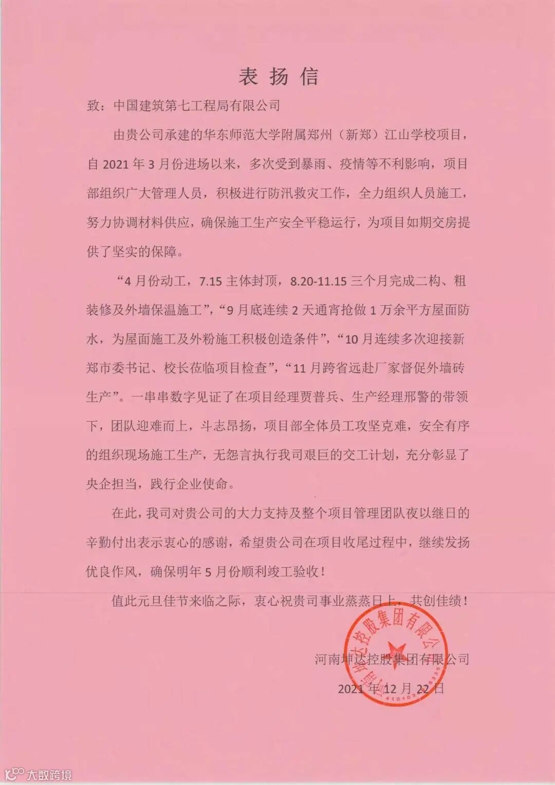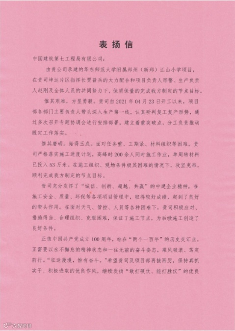 为确保施工进度,项目建设过程中全方位坚持高标准、严要求、细落实。以“严实快”的工作作风,紧盯项目施工要求,从材料采购到施工质量,从安全监管到疫情防控,每项工作分解量化,每个环节都严格把控,为提前交付奠定了扎实的基础。项目团队完美履约,多次收到表扬信,得到政府和业主单位的全力支持。